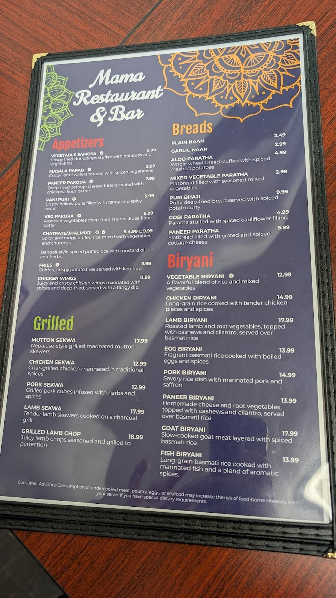 Desi Mama’s diverse and expansive menu is a vibrant celebration of Nepalese and Indian cuisine, balancing fiery spices with comfort-driven flavors. Whether you're exploring new tastes or revisiting familiar favorites, this restaurant offers a truly satisfying culinary journey in every dish.
